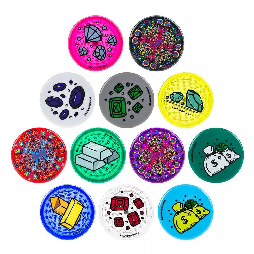 Beamer Smoke – 90mm Acrylic RANDOM TRIPPY JEWELZ 3-part grinder