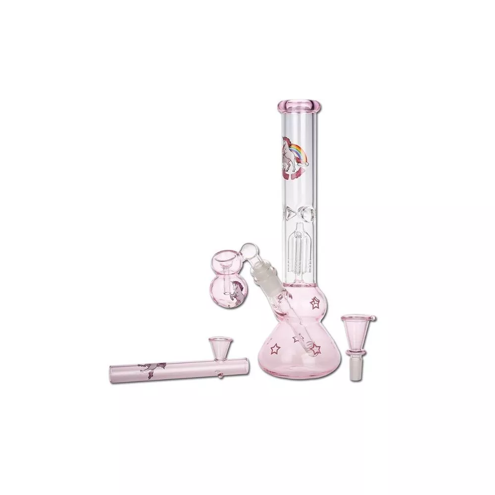 30 cm BITCH 3.2mm glass bong boxed with 4-arm tree percolator + 18.8mm > 14.5mm slitted diffuser downstem, 14.5mm bowl
