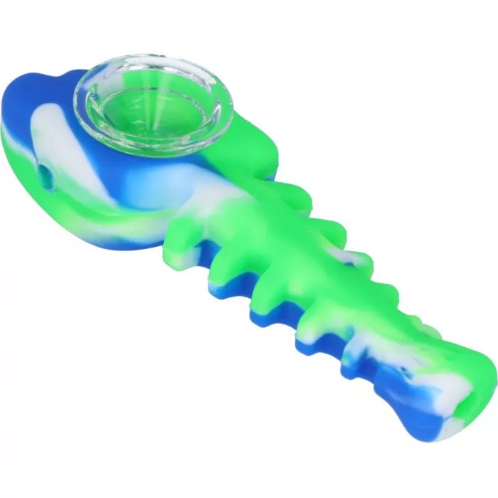 12cm Silicone Fish Bone Smoking Pipe with Glass Bowl